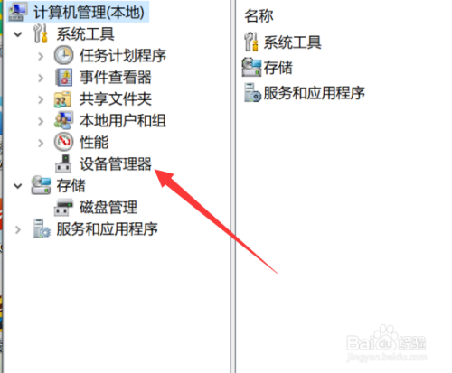 在“计算机管理”中,找到“设备管理器”。