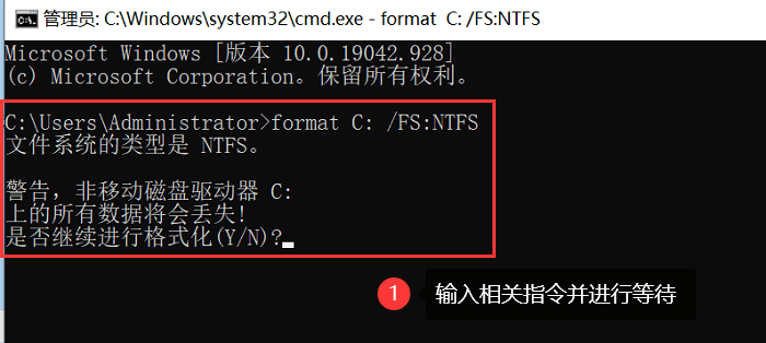 方法一:使用命令提示符格式化C盘