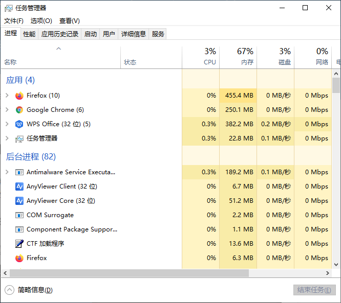 - 关闭不必要的进程:打开了过多的软件或电脑后台的一些不必要的进程,也会让CPU占用率升高。解决的方法就是调出任务管理器,点击进程,查看其中占用内存比较高的而又不必要的进程,将其关闭即可。