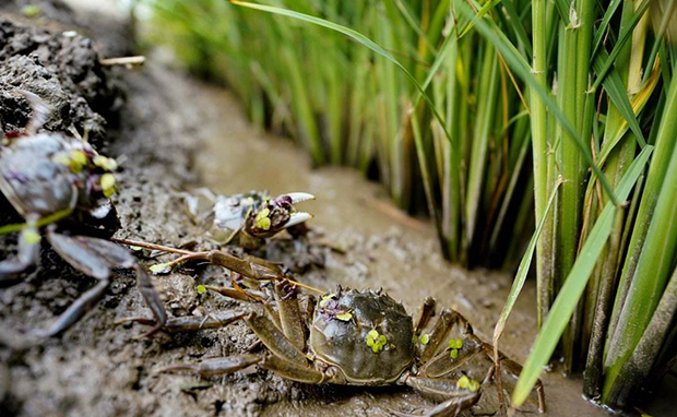 螃蟹的摄食强度随季节、水温的变化而增加或减少。在夏秋两季随着水温上升到15℃以上时,蟹的摄食能力增强,这时每天投喂一次。同时,要注意为食量,半个小时内吃完为准,不然余下的食物会污染饲养的水。