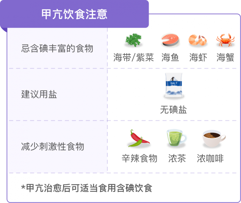 加碘盐:加碘盐中添加了碘化物,甲亢患者应避免使用,以免增加体内碘含量,刺激甲状腺激素的合成和释放,导致代谢率加快,心脏负担加重。